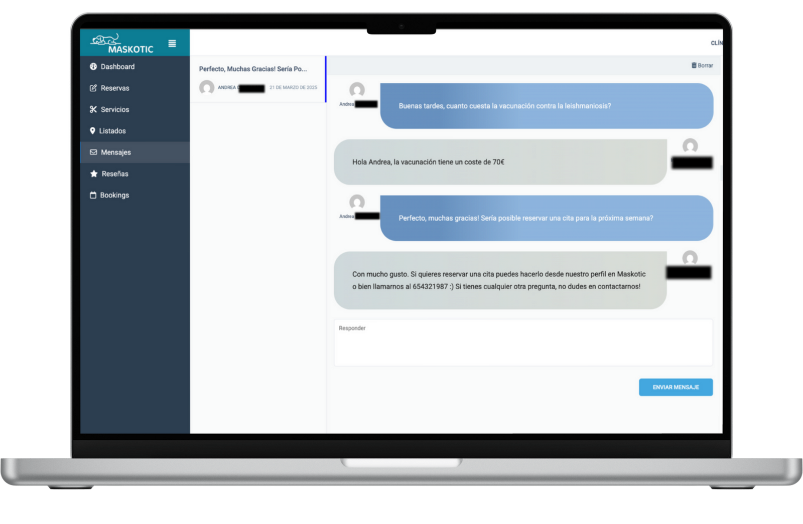 Con el sistema de mensajistica integrado, podrás mantener conversaciones directas con tus clientes sin salir de la plataforma.